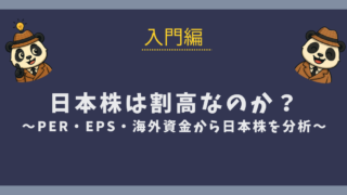 2025.05.052026.02.13 おすすめ記事 新着記事 日本株は割高なのか?PER・EPS・海外資金から徹底分析 2026.03.13 初心者向け投資ガイド資産形成 資産運用報告|2026年2月の投資推移と今後の戦略 2026.03.08 資産形成資産運用レポート 【2026年3月】S&P500は割高?5つの指標とバフェット指数で徹底検証 2026.03.03 資産形成 探偵パンダの相場推理ノートAI兵器の境界線──人間はまだ引き金を握っているのか 2026.02.28 投資コラム・マーケット分析資産形成 もっと読む 人気記事ランキング 今後のドル円為替予想|2025〜2026年の見通しと日本人投資家の戦略 2025.08.132025.12.03 5%ルール投資法の始め方|初心者でも迷わず買える下落時の最強戦略 2025.12.032026.01.19 2025年FANG+投資の総括|指数データと投資ルールで冷静に評価する 2026.01.172026.01.31 誰でも始められる金投資戦略|長期的に資産を守るためのガイド 2025.02.122026.02.13 おすすめカテゴリーはこちら ゴールド投資 金建てで見る資産価値|株価が上がっても豊かにならない理由と「金建て思考」 2026.02.26 通貨の減価から資産を守る「金」という視点 2026.02.24 金はなぜこれほどまでに買われたのか?2026年を見据えて考える 2025.12.292026.02.13 なぜ各国の中央銀行は金を買い漁るのか──年間採掘量との比較で見える“金回帰”の本質 2025.11.262026.02.13 もっと読む 初心者向け投資ガイド 日本株は割高なのか?PER・EPS・海外資金から徹底分析 2026.03.13 不安が判断を壊すとき 2026.01.262026.01.30 なぜ人は「皆が信じるもの」を信じてしまうのか──エイブラハムの寓話に学ぶ投資の原点 2026.01.222026.02.03 下落相場でも崩れない|長期投資を続けるための思考法5選【2026】 2026.01.21 もっと読む