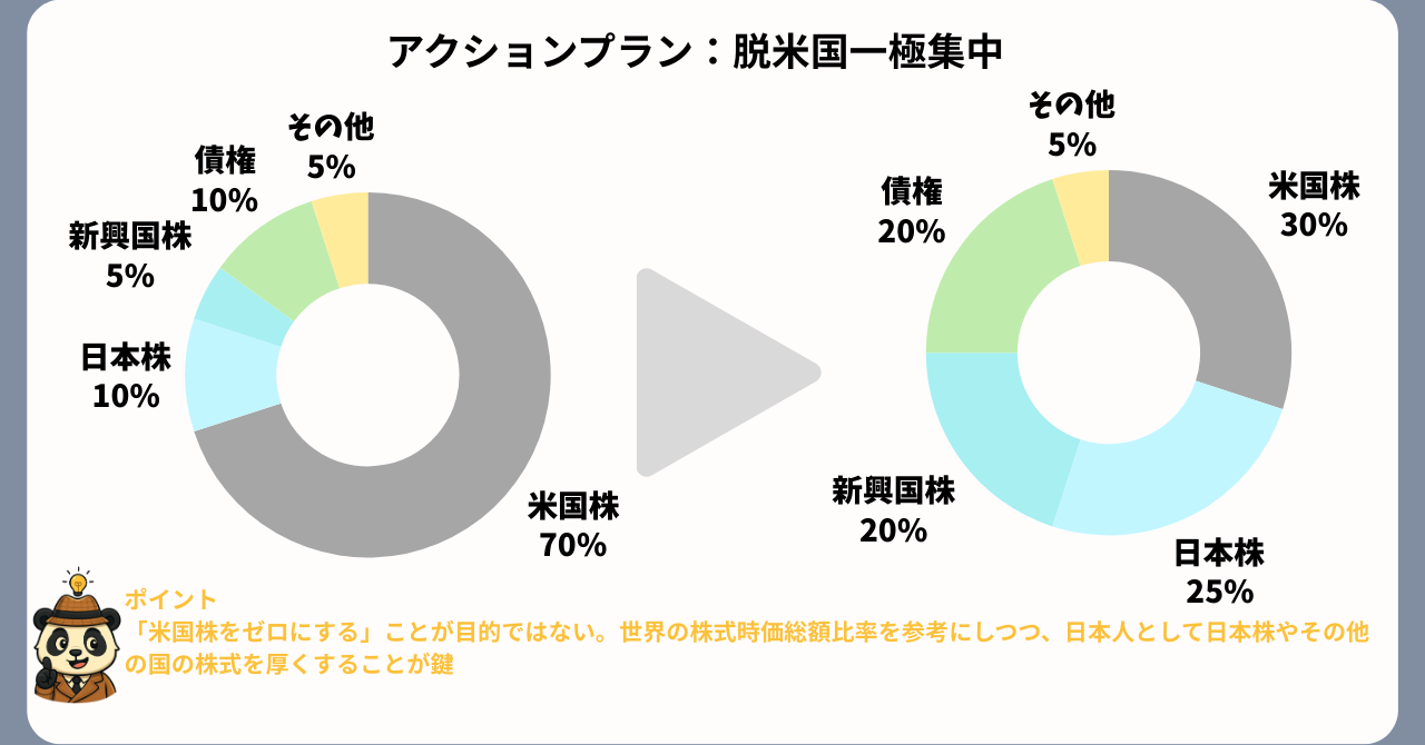→ 日本・新興国・欧州・債券・金 に振り向ける