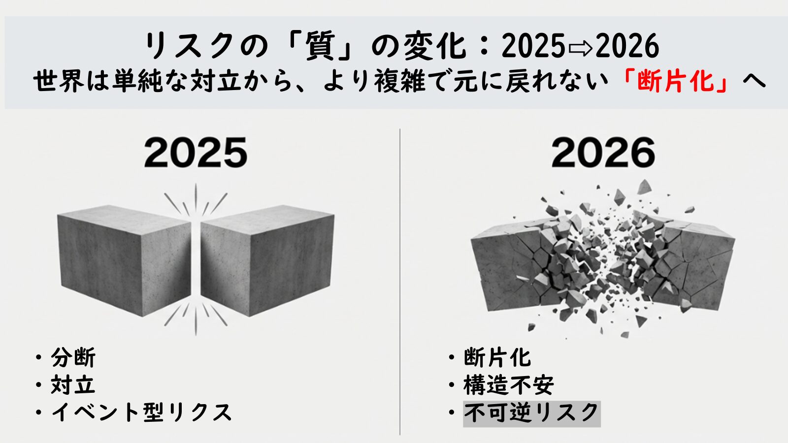 そして2026年の予測は、「その秩序が戻らないこと」が前提となっています。