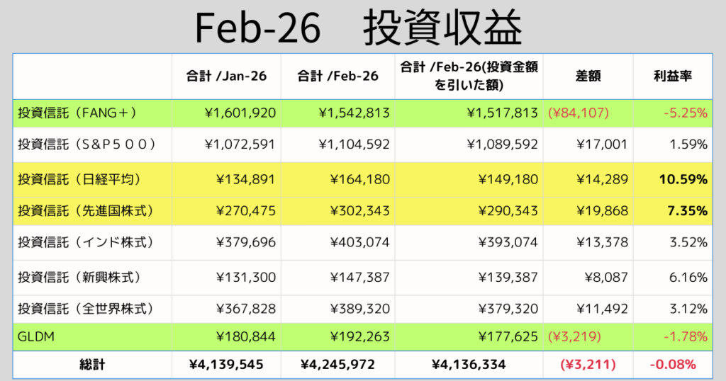 2026年2月の資産運用結果をまとめました。