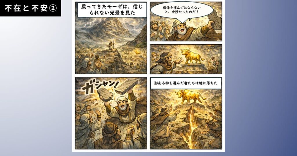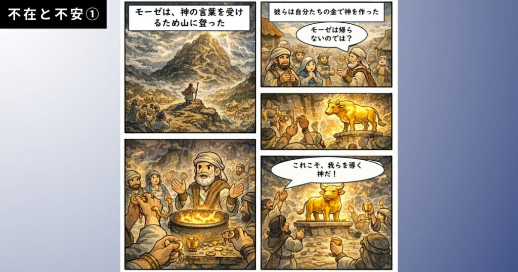 「モーゼが戻るまでの間、目に見える神を作ってほしい」