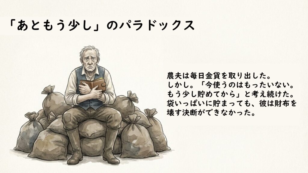 目的を持たずに増やし続けることは、魔法の財布を手放せなかった農夫のように、