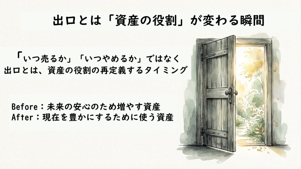 出口戦略についてはどこか「まだ先の話」として先送りしている感覚が私にもあります。