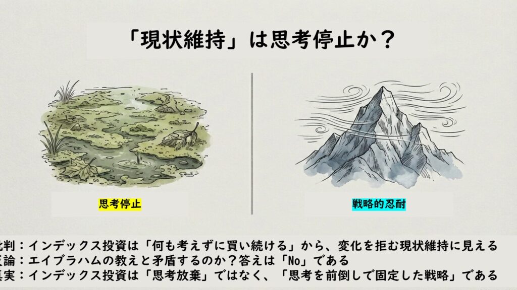 思考を前倒しで固定した戦略的な現状維持だと言えます。